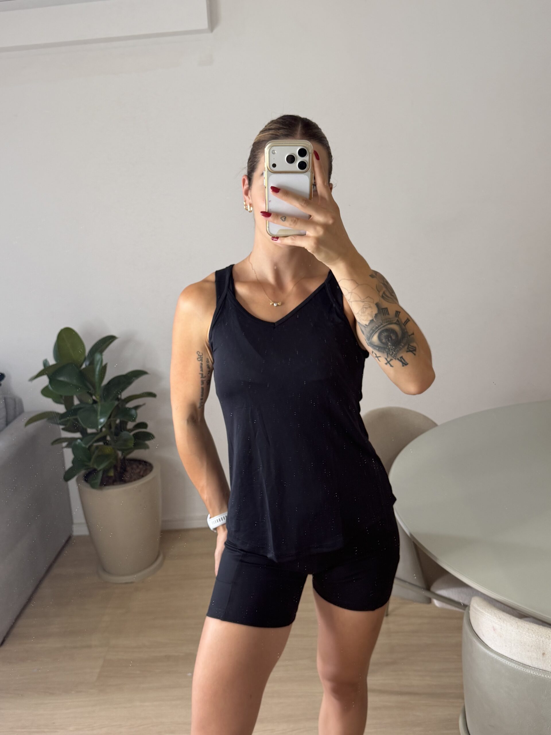 Uma peça versátil, confortável e fácil de combinar, perfeita para treinos e produções casuais com uma estética fitness e moderna.